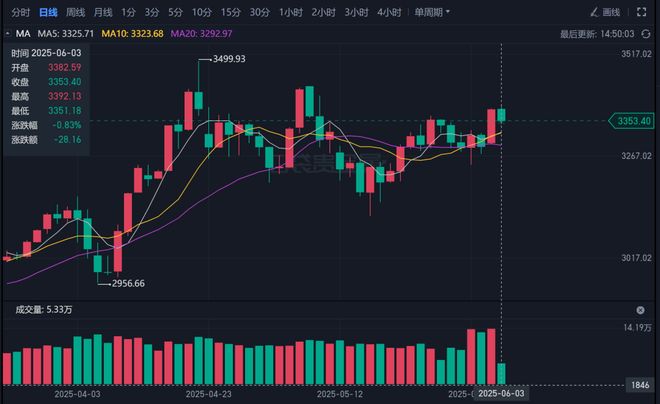 回顾5月金价走势,可谓跌宕起伏:月初在3200-3230美元区间盘整,中旬因地缘风险一度冲高至3392.25美元,随后受美元走强和美联储加息预期打压,最低下探至3292.59美元。而此次反弹,不仅收复了5月下旬的跌幅,更在技术面形成“双底”形态,短期多头信心显著修复。