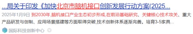 北京提出到2030年,脑机接口产业生态初步形成,在前沿基础研究、关键核心技术攻关、重大产品研发与创制/、应用场景搭建等方面取得突破。